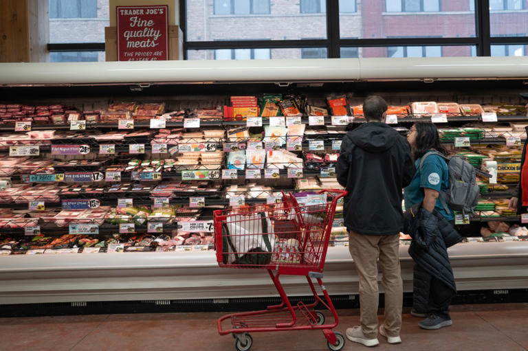 Customers shop at a Trader Joe’s store in Chicago on December 10, 2025.