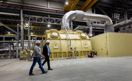 Two shinier, smaller natural gas plants sit in front of it, whirring gently, spitting out steam. These plants, which currently burn 30% hydrogen, were designed and built by Mitsubishi. Inside, half of the control room’s chairs are filled by central Utahns in cowboy boots, and the other half are filled by Japanese engineers.