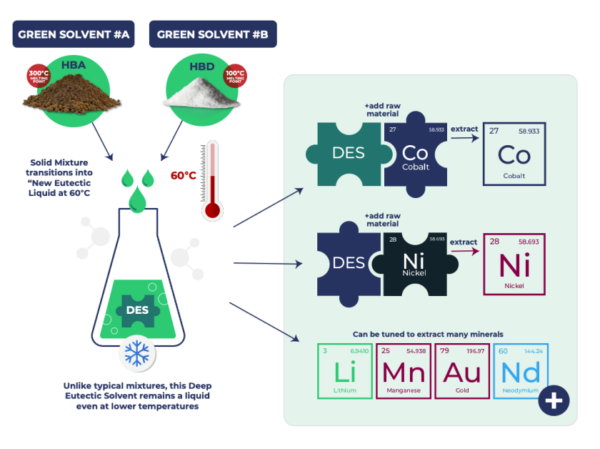 IONSolv uses a family of Deep Eutectic Solvents, biodegradable, non-toxic liquid solvents engineered to selectively dissolve and extract targeted metals. Image: Iondrive