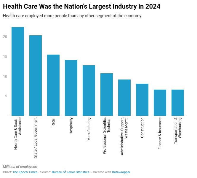 Health care, grouped with social services by the Bureau of Labor Statistics, employed more people than any other industry and was one of the fastest growing U.S. industries.