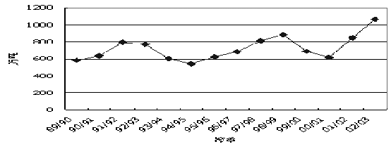 This current cycle starts from 2002 and will end in 2007. So if the cycle holds, from 2005, the sugar production in China should start to decline.