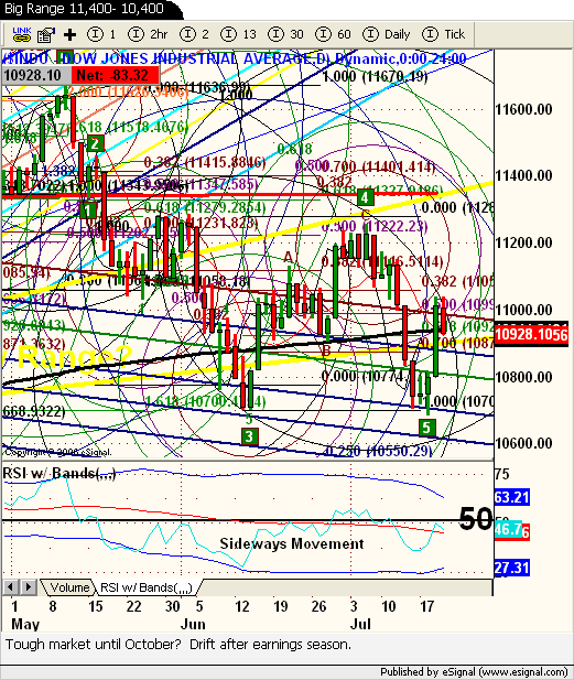 We need about three rate cuts IMO to prevent a hard landing in '07??? That and lower oil prices! More downside after earnings season? Look for the 200ma to flatten. You can see we're back in the old downtrend forks begun at the beginning of year.