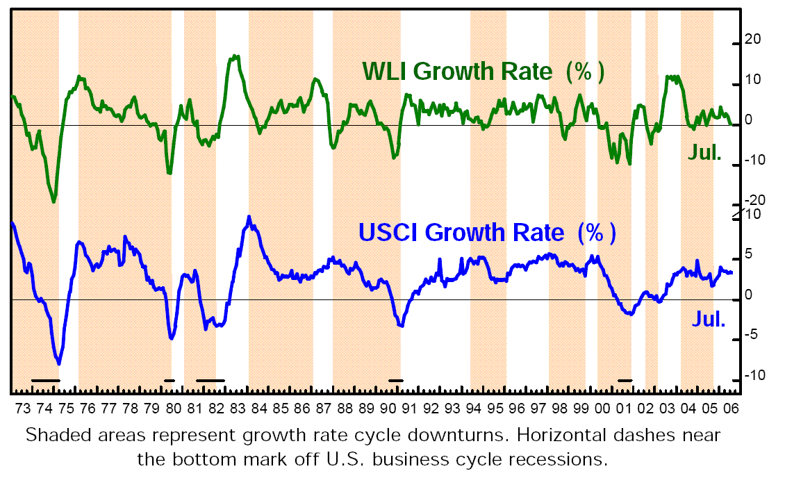 Just a couple of charts are probably fair use, right? WLI is ECRI's flagship leading indicator index, and USCI is their "coincident index" which correlates closely with GDP growth rates.