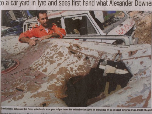 "If (Alexander Downer) thinks it was a hoax, he should come and see the ambulances himself," said Sami Yazbek, the head of the Lebanese Red Cross in Tyre.