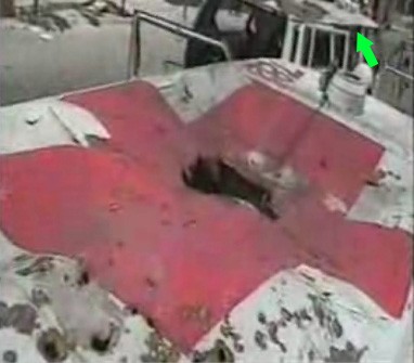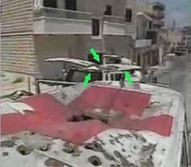 * The missile through the Red Cross painted on the roof of one ambulance becomes a possible missile through the back of the other of the two that were attacked.