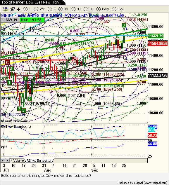 The market has performed like a champ since July as oil and commodity prices moderated, pretty amazing actually? I suppose we are setting up for a soft-hard landing?<g> Treasury revenues should be peaking this year? When does the market price in slower growth for 07-08? And how fast? I'm sure risk is increasing as bullish sentiment recovers? I'm getting October jitters already?<g> But since we didn't have much Summer doldrums I expect the bears to apply some volatility if there are any of them left? Seriously! Election politics are probably a factor in market behavior? I'm still keeping my eye on the Dollar. I'll probably be bearish by mid Dec to Jan? I'll continue to try and capitalize on extremes as out guessing these moves in advance is difficult....but I usually know them when I see them?<g> Where's the top? 12K or 11.8K? Can we linger at new highs through tax season?
