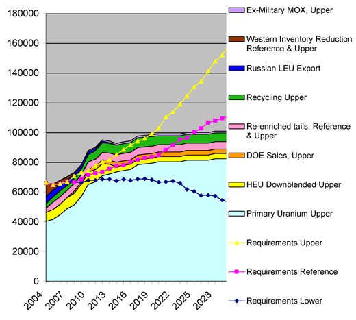 To: SliderOnTheBlack who wrote (4051 ) 12/16/2006 11:58:59 PM From: smh Read Replies (2) | Respond to of 50324 Just another inconvenient truth... You are looking at 18+ month old data This is a little better maybe 6+ months Wonder what S/D looks like today? ________________________________________________________________ "Physical demand is what separates speculative bull markets from secular bull markets..." Is it really so clear? _______________________________________________________________________ December 16, 2006 By Julie Ickes, Editor of StockInterview.com Largest Weekly Spot Uranium Price Jump in History ‘Feeding Frenzy’ Sends Weekly Spot Uranium Price to Record $72/Pound The TradeTech Weekly Spot Uranium Price Indicator has soared by more than 97 percent during 2006. As StockInterview.com predicted a week ago, uranium sellers got what they were expecting - a price bump. For the week ending December 15, the weekly spot uranium price indicator jumped by $7/pound, or more than 10 percent, to $72/pound per pound U3O8. According to Treva Klingbiel, editor of Nuclear Market Review, this was “the single largest increase reported since NUEXCO began publishing prices in 1968.” TradeTech posts the weekly spot uranium price change on the company’s website – uranium.info The price increase resulted from a number of bids for an offering by a U.S. uranium producer of 260 thousand pounds of U3O8. According to Klingbiel, “The producer received multiple bids with the winning bid at, or very near, today’s Uranium Spot Price indicator of $72/pound.” At least nine buyers remain active in the market seeking about 5 million pounds of U3O8, according to TradeTech, which releases the weekly spot uranium price indicator through widely followed industry magazine, Nuclear Market Review. Klingbiel reported this week’s auction of uranium created a ‘feeding frenzy’ among buyers, writing, “Meeting this expectation, competition was indeed fierce, as buyers exhibited a willingness to pay a strong premium in order to purchase material at a fixed price.” Looking ahead, one U.S. utility hopes to secure 3.5 million pounds for delivery in 2012. A non-U.S. utility seeks to secure 10 million pounds for delivery starting in 2009. Another two non-U.S. utilities are attempting to purchase more than five million pounds in the long-term market, starting as early as 2009. Fifteen more utilities are evaluating long-term purchases for more than 35 million pounds for delivery between 2007 and 2020. Only one U.S.-based seller is currently evaluating bids for 1.2 million pounds of uranium for delivery as early as 2008. Clearly, the spectacular price rally of 2006 will continue into early 2007 as the impact of the flooding at, and subsequent delays of uranium production from, Cameco Corp’s Cigar Lake project in northern Saskatchewan. Because of the past two week’s news reports, there was concern about the Department of Energy future auctioning from uranium inventories. These auctions may not begin to take place until mid 2007.