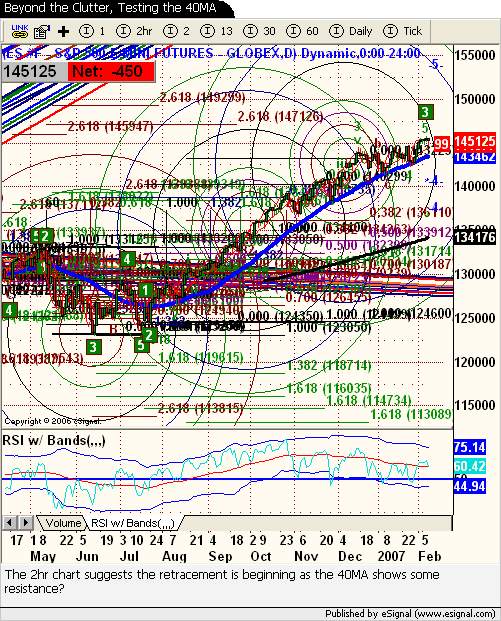 The sideways market has retracement sentiment rising, I still have a few bullish tingles in my toes? I thought for sure we were going to see 1460?<g> Watch out for momentum in either direction? Watch the 50 RSI as usual whether trading the 2hour or daily. The 40MA is definitely in play.