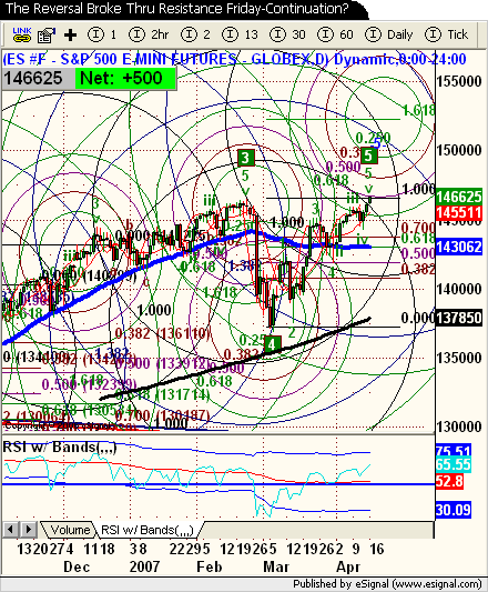 Apparently the reversal is/was real? 1.618 Fib by June expiration? The correction didn't put enough fear into the market or there is still too much liquidity in the world? Goldmans SP target in sight now? Just keep eyes oil prices down, corn prices/production are going to create inflation on the shelf for many products.....get long commodities again? I might need to buy some beef on the hoof and let him graze on my back yard if I want to afford beef next year?<g> I expect the price of bread to double again also? Booyah!<g>