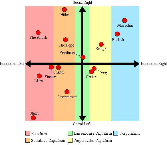 This chart is both political and economic......again it doesn't show John Kerry but he would be slightly left of Clinton but still right. Please note that some of the smartest people are left of center. ;-)