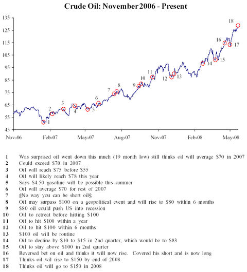 Birinyi Associates promptly distributed a note to clients which shows that Mr. Pickens' comments should not be ignored. His historical comments, shown below versus an oil price chart, have since been reproduced by Reuters and by CNBC.