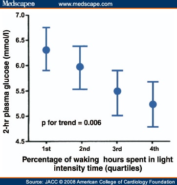 Daily Activity Reduces Post-Prandial Glucose. Cumulative daily light-intensity physical activity was inversely associated with post-prandial glucose levels. Data from Healy et al.[39]