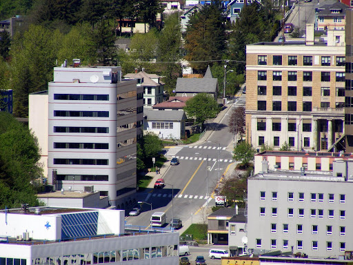 The building on the left in Juneau is called "The Spam Can" because of the rounded corners.