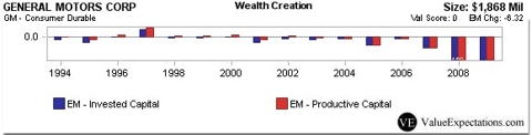 To: tejek who wrote (458918 ) 2/24/2009 1:53:25 PM From: TimF Read Replies (2) | Respond to of 1573433 GM has not been chronically non profitable Yes it has been. --------------- Over the past decade, the capital destruction by GM has been breathtaking, on a greater scale than documented by Mr. Jensen for the 1980s. GM has invested $310 billion in its business between 1998 and 2007. The total depreciation of GM's physical plant during this period was $128 billion, meaning that a net $182 billion of society's capital has been pumped into GM over the past decade -- a waste of about $1.5 billion per month of national savings. The story at Ford has not been as adverse but is still disheartening, as Ford has invested $155 billion and consumed $8 billion net of depreciation since 1998. As a society, we have very little to show for this $465 billion. At the end of 1998, GM's market capitalization was $46 billion and Ford's was $71 billion. Today both firms have negligible value, with share prices in the low single digits. Both are facing imminent bankruptcy and delisting from the major stock exchanges. Along with management, the companies' unions and even their regulators in Washington may have their own culpability, a topic that merits its own separate discussion. Yet one can only imagine how the $465 billion could have been used better -- for instance, GM and Ford could have closed their own facilities and acquired all of the shares of Honda, Toyota, Nissan and Volkswagen.online.wsj.com GM Trailing 12 months EPS -38.74finance.yahoo.com GM earnings going back to 2000 123jump.com Time to Pull the Plug on General Motorsrealclearmarkets.com Has General Motors Earned a Bailout? November 26, 2008 Recently John Tamny wrote an article, Pull the Plug on General Motors (GM), in which he discusses the various reasons why it is essential to let GM fail. So we thought we would give you a graphical representation of GM's historical ability to create shareholder value, along with a Value Expectations scenario of what GM must generate to sustain its current price. The Economic Margin chart below displays GM's consistent inability to earn its cost of capital and continuous destruction shareholder value. Given such poor levels of Economic Margins there is no surprise its relative returns to the market have plummeted. ... As shareholders you have to ask yourselves, will GM ever be able deliver those levels of EBITDA Margins? As taxpayers we have to ask ourselves if a bailout would just be a waste of tax payers' money. Given GM's consistent destruction of wealth and the tremendous amount of restructuring it would need, a bailout looks more like life support.seekingalpha.com