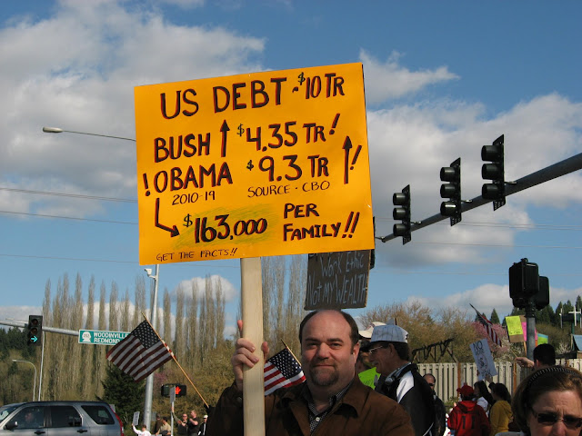 The guy who did this sign said economics is his hobby. He handed out a summary of how he came up with his figures with govt web sites included.