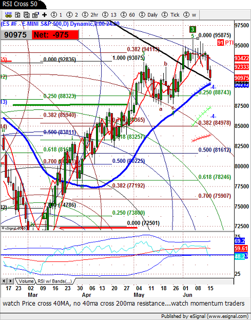 There should be lots of talk from technicians about H&S pattern but, we've seen it coming for awhile. Let's see how far we can go in a protected market? We'll probably go farther than most believe? 782 neighborhood? Summer doldrums finally arrive? Watch sentiment worsen, unemployment not better for sometime? Banks are the only people enjoying low interest rates, crude oil way too high for economic recovery. Where's obamas economic stimulus spending? Maybe we'll see some gov spending appear in GDP this fall?