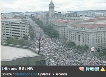 I think you are correct that the first shot is old - a 1997 Promise Keepers rally, IIRC. Malkin and others have issued corrections after mistakenly referencing it. But the other shots, along with others available via a quick google, support much higher numbers than 70-100k. Here's a shot from a traffic camera at 14th & E, looking toward the Capitol.