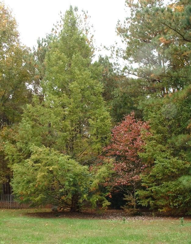 I planted two three-foot saplings in 1998. They are now both over 40 feet and growing fast despite three years of fairly severe drought. The smaller reddish tree between is a dogwood I planted at the same time.