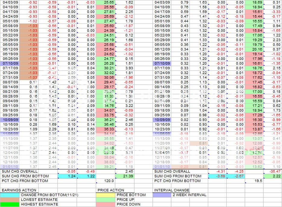 This is the update of the LRCX and WFR tables which is over a 2 week interval. WFR is still coming down on their earnings estimates, not much, but enough to make a new low for the chart coverage period.