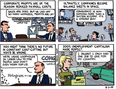 >> Awesome, the more people companies lay off, the higher the profits. Imagine the Dow when unemployment is at 30% <<