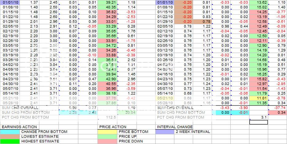 This is the update of the LRCX WFR tables for this week. The big news here is that a new low for WFR was established last week which wiped out the old low set on 11/21/08. We now have a 1 week history of moving off the new low by 0.34 cents. WFR has a long way to go to get back to higher teens where it was before it "crashed".