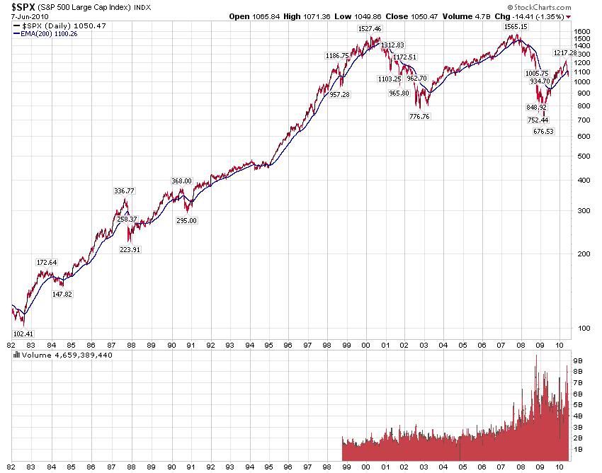 A few months in 1984, late 1987, late 1990, and then the bears of 2001 and 2008. That's it. No other appreciable dips below it. Simply amazing, the power of a credit bubble to inflate asset prices. It's no wonder the bulls are convinced it's another buying opportunity.
