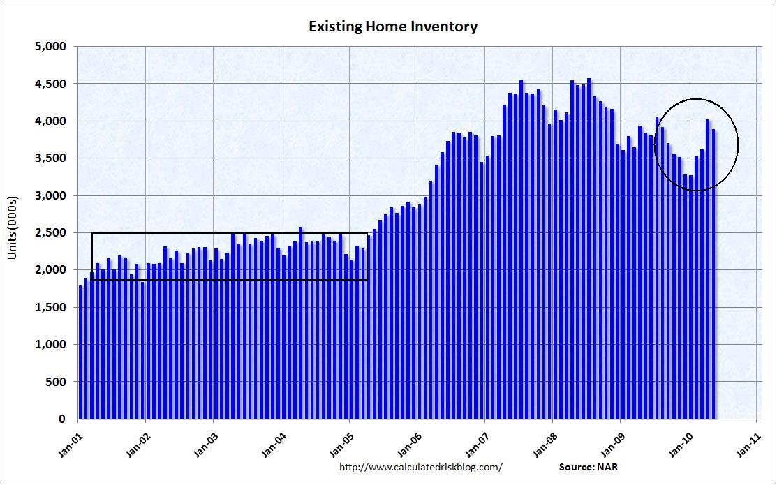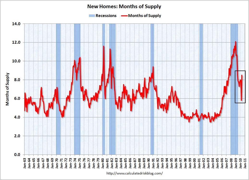 To: Asymmetric who wrote (965 ) 6/27/2010 1:37:54 PM From: tejek 2 Recommendations Respond to of 1428 This is a very comprehensive look at why the housing market is still mired in slow growth two years later, and explains in part why job growth in this country is so anemic. I suspect where things are the worse are in states like CA......and AZ, NV, and FLA.A Closer Look at Housing by Hale "Bonddad" Stewart @ 7:37 AM Last week we learned that the housing market was doing poorly, largely because of the expiration of the new home buyers tax credit. As such, it seems appropriate to take a look at the housing market to see if its condition is improving or deteriorating. All of the charts used are from the blog Calculated Risk. First, let's look at the existing home sales market. This is by far the largest of the two housing markets. Click on all graphs for a larger image. The pace of home sales bottomed in early 2008. It has spiked from that level several times, but seems to gravitate to the 5,000,000/year level. Total inventory of available homes is still horribly out of line with the historical norms of the early 2000s. The housing market measures sales by a "how long would it take to clear current inventory at the current sales pace" measurement. As with the total inventory figure, that number is still very high and indicates the market is far from setting an equilibrium price. Now let's turn to the new homes market. The pace of new home sales hit a record low last month. Unlike the existing home sales market, the inventory of available homes is near historical lows. The inventory available for sales figures was at a low level until last month when it spiked higher. What does all this mean? 1.) The existing home sales market has farther to fall. There is simply far too much inventory on the market for prices to remain stable. 2.) During the recession, the economy lost a total of 7,281,000 million jobs. Of these, 2,102,000 or 28% were construction workers. Given the massive inventory overhang in the existing home sales market it is highly doubtful that we'll see large construction employment gains in the near future. 3.) Housing wealth is one determinant of consumer behavior. If housing prices continue to move lower, expect lower consumer spending to follow. fivethirtyeight.com
