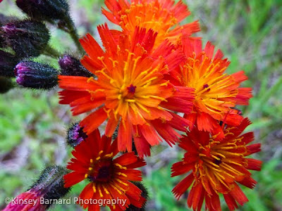 They are called Orange Hockweed. They are in the dandelion family and are considered to be invasive weeds by some. We have them up at our mt property and I think they are pretty. I include them in my wildflower bouquets.