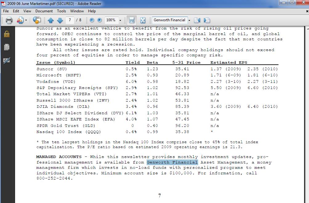 To: rsie who wrote (5348 ) 7/5/2010 10:09:29 PM From: Kirk © 2 Recommendations Read Replies (2) | Respond to of 10065 "i have found that most are competitors trying to get even, their arguments are sour, old and no longer of interest." I find competitors of Bernie Madoff were also upset at what he was doing. It is too bad more of them didn't push the issue with the SEC to get them to stop watching porn and do their jobs. Usually once you see one roach... there are thousands in the walls.... Did you know there is a suit against the firm that Brinker advertised to manage money in his newsletter? I started to warn folks about this relationship back in 2003 when they advertised returns with different starting dates so they didn't have to show the lousy returns for the aggressive portfolio that was loaded up with the QQQs.GENWORTH FINANCIAL WEALTH MANAGEMENT (BJ GROUP SERVICES) Class Period: Dec 22, 2003 to Dec 22, 2009 Lead Plaintiff Deadline: Mar 8, 2010 Summary of Case: A securities class action has been filed against Genworth Financial Wealth Management (BJ Group Services Portfolios) ("Genworth" or the "Company") on behalf of all securities purchasers from December 22, 2003 through December 22, 2009, inclusive ("Class Period"), in the United States District Court for the Eastern District of New York.The claims arise from the fraudulent scheme perpetrated by Defendants through Genworth's marketing, solicitation, sale and management of the Portfolio. The complaint alleges that the scheme was facilitated by Defendants, who knowingly, recklessly and/or with intent to deceive disseminated to prospective and current investors materially misleading representations regarding the Portfolio and its "exclusive" management agreement with Robert "Bob" Brinker. The complaint alleges that According to all of its sales, marketing and disclosure materials disseminated to prospective and current investors in Genworth's Private Client Group, "The BJ Group Service offers clients tactical asset allocation by implementing recommendations from Robert ("Bob") J. Brinker, author of Marketimer newsletter." Defendants represented that "Bob recommends asset allocations and fund selection for GF AM's management of accounts for the BJ Group Advisory Services." The materials explicitly state: "This portfolio is based on the Bob Brinker model, offered through our exclusive partnership with him" and that "[o]ur experienced professionals work to implement Bob's investment strategy utilizing his proprietary tactical asset allocation model." The complaint further alleges that Contrary to Defendants' representations that the Portfolio was being managed based upon the Brinker recommendations, the percentage of non-Brinker recommended Funds being purchased for the Portfolio routinely exceeded 50%. By not implementing Brinker's tactical asset allocation and fund selection, Genworth was able to generate for itself extra revenues by selecting alternate mutual funds that paid higher administrative and service fees. Defendants purchased these funds, instead of purchasing funds recommended by Brinker, notwithstanding that these funds routinely underperformed Funds recommended by Brinker. If you purchased this company's shares during the Class Period and suffered a loss, please contact Scott + Scott LLP..... 3.bp.blogspot.com 1.bp.blogspot.com scott-scott.com