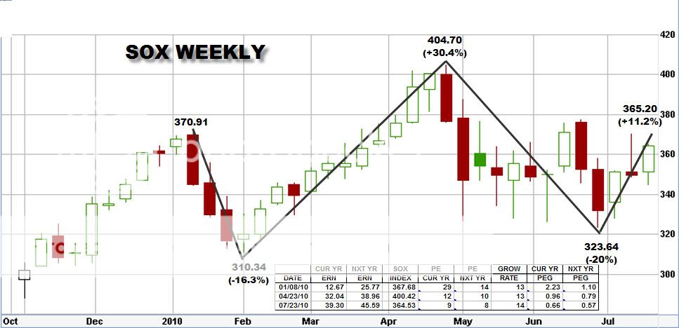 The chart below is a weekly chart of the SOX stocks for the past 9 months. This allows a look at where the index is today as well as how the index went from the 1st of the year to the present.
