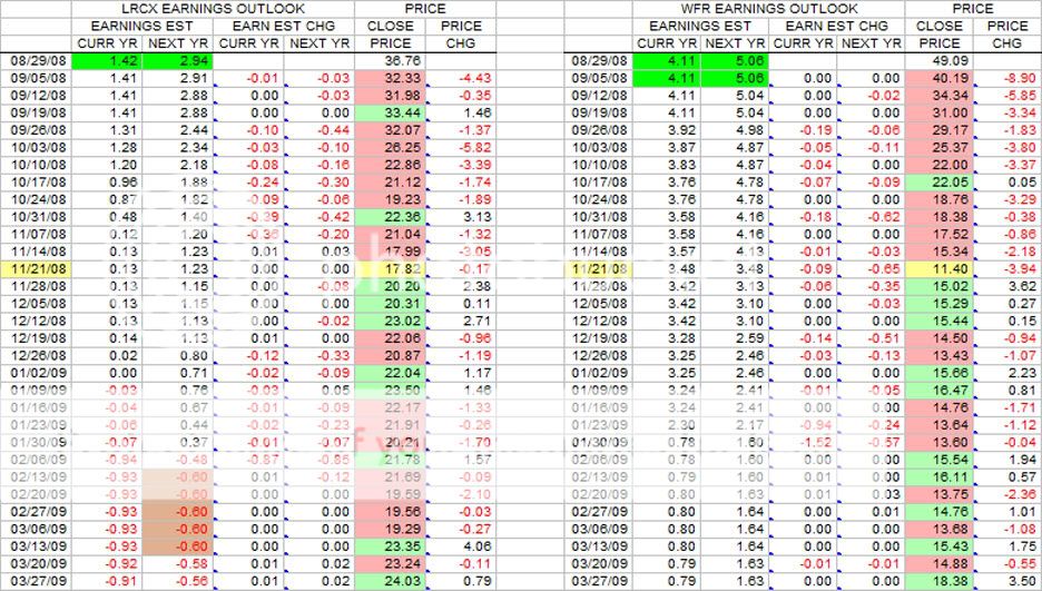This is the weekly update of the LRCX and WFR tables. Some interesting news for both stocks this past week.
