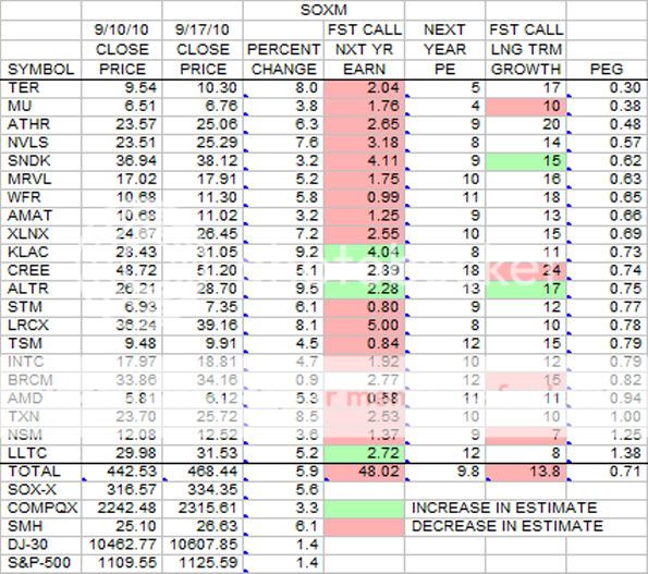 This is the same SOXM data as the last post, but this time it is sorted by PEG.