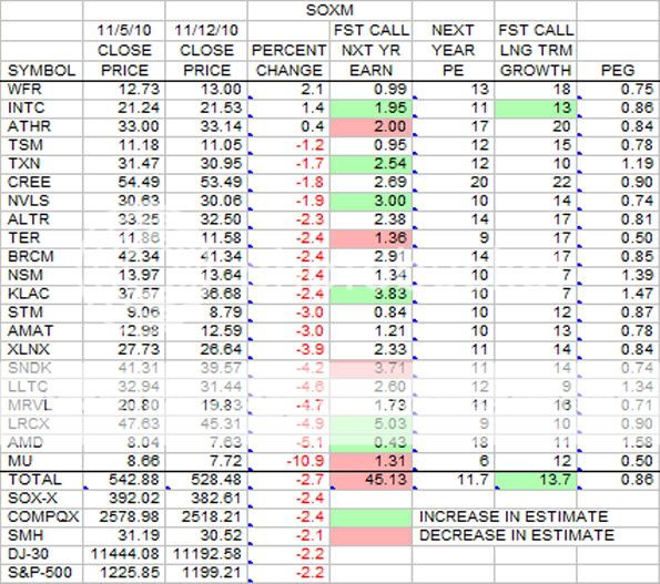 This is the weekly look at the SOXM stocks in terms of earnings estimates, growth estimates, and price changes sorted by price percent change.