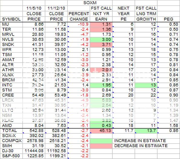 This is the same SOXM data as the last post, but this time it is sorted by PEG.