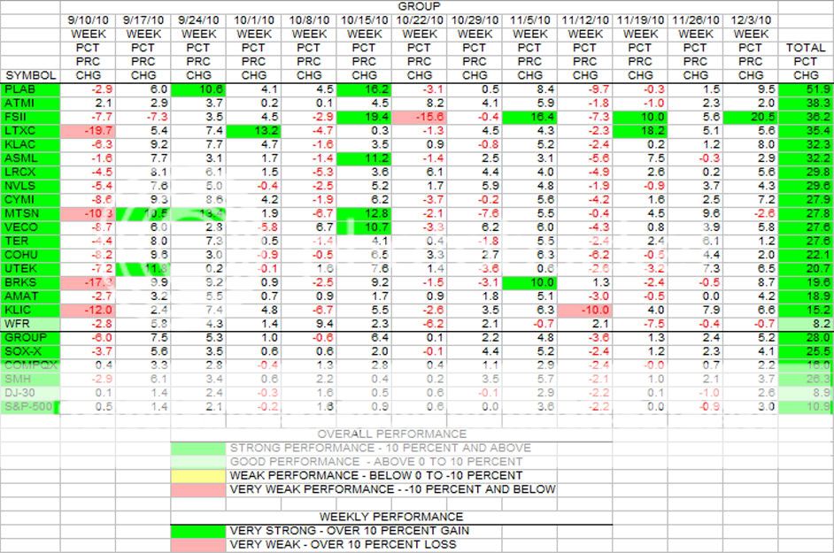 This is the update of the 13 week rolling quarter for the Group stocks in terms of percent change. Speaking of the rolling quarter, there are only 4 weeks left in this fourth CY quarter. Getting close to the end of 2010.