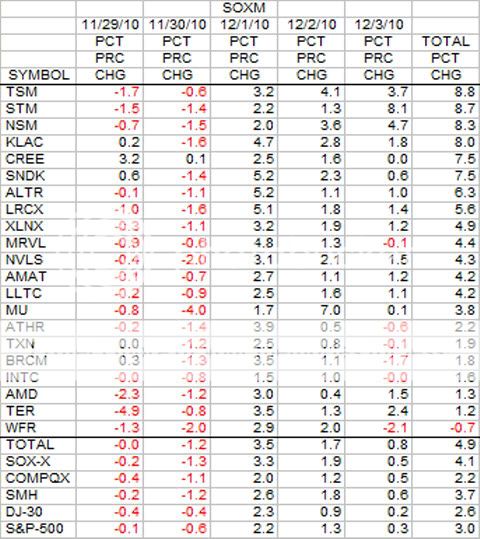 This is the weekly look at the SOXM stocks in terms of percent change.