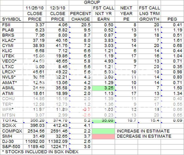 Only one earnings estimate change and no growth estimate changes this week. Bottom line numbers all in the black. Only 2 stocks, WFR and MTSN in the red.