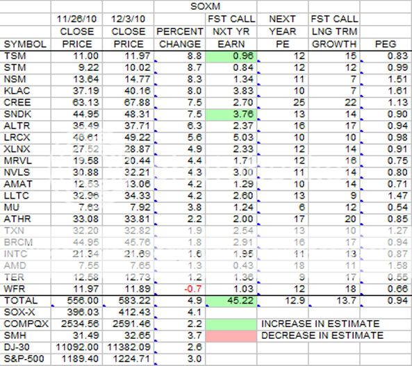 This is the weekly look at the SOXM stocks in terms of earnings estimates, growth estimates and price changes sorted by price percent change.