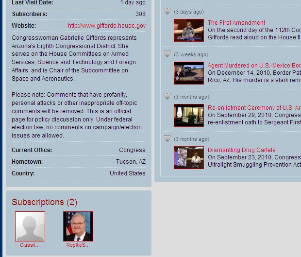 To: Brumar89 who wrote (597449 ) 1/10/2011 9:35:57 PM From: Brumar89 Read Replies (1) | Respond to of 1574104 Validating Aspects of 'The Cholla Jumps' Backstory Within hours of the shootings in Tucson, Pima County Sheriff Clarence Dupnik made the bizarre decision to appear on as many national various television programs as possible. In each appearance, he made the assertion that either right wing talk radio, the Republican Party or other dark forces motivated young Loughner to commit mass murder. These statements were completely unfounded and Dupnik admitted as much when pressed. Furthermore Dupnik actually confessed that Loughner had made prior death threats against a person who was not Rep. Giffords. [ Thus the key charge, that Loughner had a history of prior death threats, is confirmed by the sheriff himself. What we don't know is why this history wasn't taken more seriously by local law enforcement and whether there were grounds for arrest on those charges. ] What the The Cholla Jumps site is alleging – and which has not yet been confirmed- is the following: Jared Loughner has been making death threats by phone to many people in Pima County including staff of Pima Community College, radio personalities and local bloggers. When Pima County Sheriff’s Office was informed, his deputies assured the victims that he was being well managed by the mental health system. It was also suggested that further pressing of charges would be unnecessary and probably cause more problems than it solved as Jared Loughner has a family member that works for Pima County. The question is, is this true? We don’t know – yet – but it’s certainly plausible. Indeed. And we can validate elements of the back-story to help determine veracity. Consider this claim from the Cholla story: "Amy Loughner is a Natural Resource specialist for the Pima County Parks and Recreation." This appears to be a true statement. Her name is listed in several places around the web as affiliated with Pima County. Amy was married to Randy Loughner in 1986.Who is Randy Lee Loughner? An unconfirmed report describes him as also affiliated with local government, working in -- of all places -- Child Protective Services." The question arises, in part because of the sheriff's odd behavior: did the fact that one or both parents worked in local government allow them to "pull strings" to protect a troubled child? Perhaps some "professional journalists" could actually "investigate" this matter if they're not too busy inventing new smears for Sarah Palin.directorblue.blogspot.com .... To: cripplecreek; SkyPilot; Williams I'm really shocked that the media is ignoring the fact that Jerry Loughner's dad, Randy Lee Loughner works in CHILD PROTECTIVE SERVICES. Why isn't the press reporting this??? Can you imagine that this isn't being mentioned ANYWHERE? 6 posted on Monday, January 10, 2011 5:38:03 PM by hennie pennie 209.157.64.201 ------------------------------------ Curious: Rep. Giffords' Official YouTube Channel Subscribes to Only Two People: Rep. Ike Skelton and... Jared Lee Loughner Perhaps Sheriff Dupnik could take a few moments away from his busy television schedule to investigate the following odd connection between the Giffords campaign and her accused shooter? An anonymous tipster writes: Don't know if you saw this or not. Her [Giffords'] Youtube page has only two subscriptions, one links to the shooter's page (lower left corner, name classit10) Now, her own political page links back to this youtube site, so it must be hers. I don't know if someone has hacked this page or what. Strange to say the least. Indeed. But I'm sure Sheriff Dupnik is well ahead of us and is actively attempting to figure out the tie.directorblue.blogspot.com [I confirmed - Gifford's youtube account has a link to classitup10 which goes to Jared Lee Loughner's page. youtube.com youtube.com Now there were probably only two accounts linked to hers when this happened but there are a lot more now, some of them very weird looking. ]