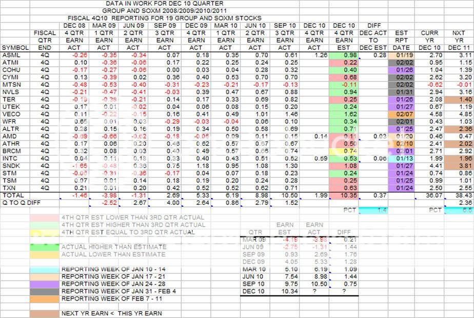 This is the update for the earnings estimates and actuals to date for those Group and SOXM stocks that report on a CY/FY year basis. Since this is the 4th quarter and yearly reporting data, the time taken to report is a little longer than usual, but it is coming nevertheless.