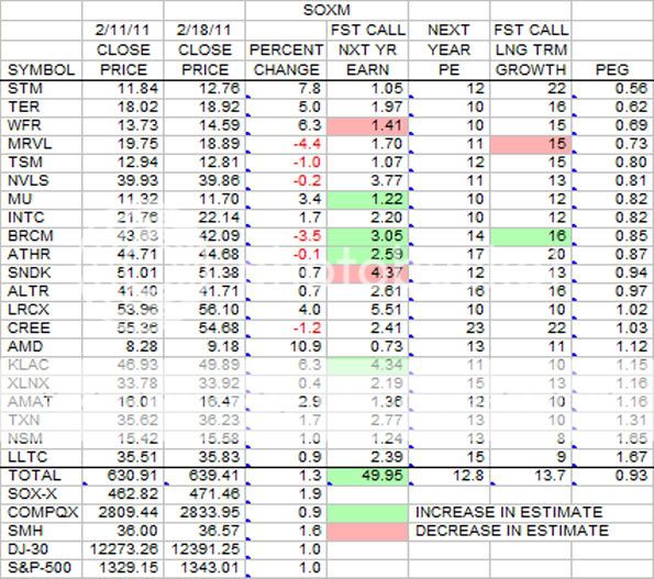 This is the same SOXM data as the last post, but this time it is sorted by PEG.