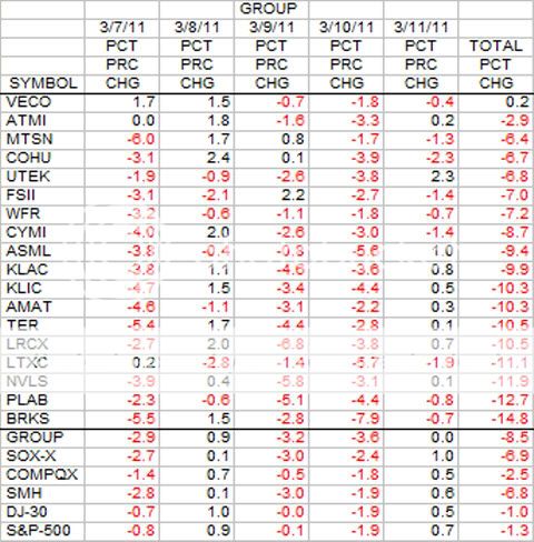 A lot of red this week! Eight of the 18 stocks lost more than 10 percent and only 1 stock, VECO, was able to eke out a 0.2 percent gain. The Group overall was down 8.5 percent. It has been a long time since that type of loss was experienced.