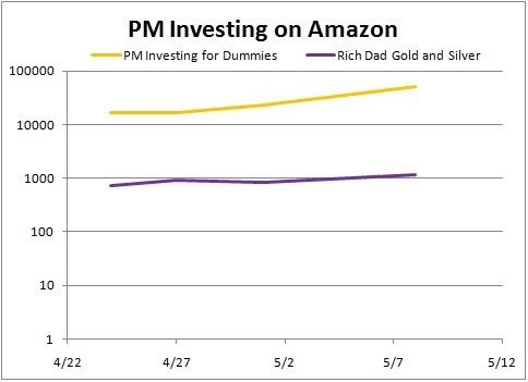 Here is my low tech Amazon PM Canary Chart that I have been logging out of interest as I remember. I selected two titles, one proposed by this board and one by Amazon popularity. Both losta little steam last week, although the Rich Dad Advisor's PM investing book is still in the top 25 of all investing books.