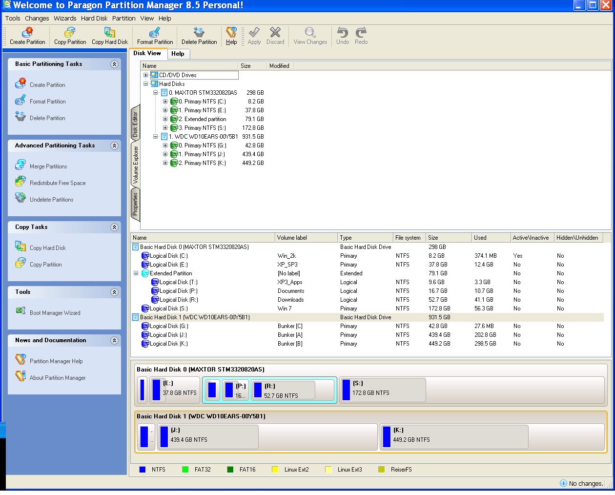 As you can see, I can Hide/Unhide, make Active/Inactive, Copy a partition, or a whole disk with just a few key strokes. There is a boot Manager wizard, plus a number of utilities including a complete defragmentation program that will defragment the windows OS as well as other files. It works on Linux too.