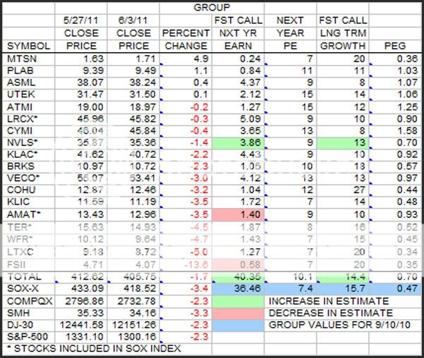 NVLS made the biggest move this week in the earnings and growth estimates. The moves were big enough to make the bottom line changes both in the green. In terms of the bottom line the Group, while negative, did quite a bit better than the SOX and SMH.