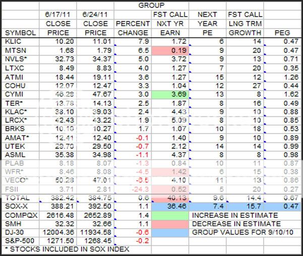 Over half of the stocks made gains this week, but FSII had a very bad week stemming from an earnings report that was not accepted at all well by the market. VECO was down over $3 dollars a share to finish in next to last place in the table.
