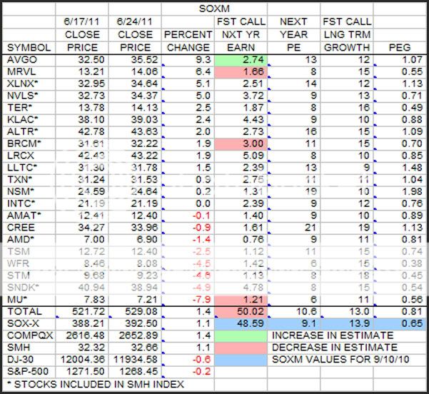 This is the weekly look at the SOXM stocks in terms of earnings estimates, growth estimates, and price changes sorted by price percent change.
