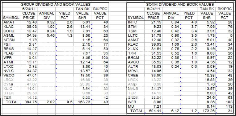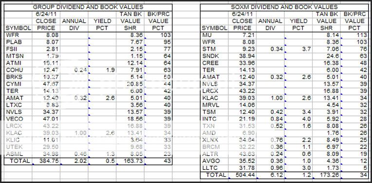 This is the update of the Dividend and Tangible Book Value Tables for this weekend. The INTC dividend number was upgraded to its present value of 0.84 and the prices were updated to Friday's closing values.