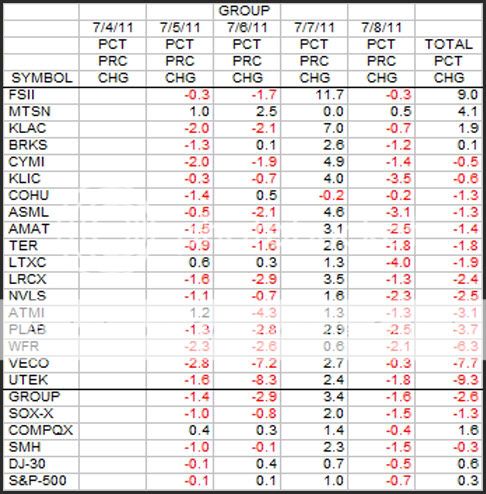 This is the weekly look at the Group stocks in terms of percent change. This was a short week with Monday being the 4th of July.