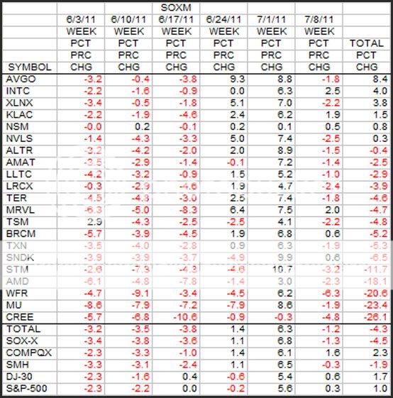 This is the longer 6 week look at the SOXM stocks in terms of percent change.